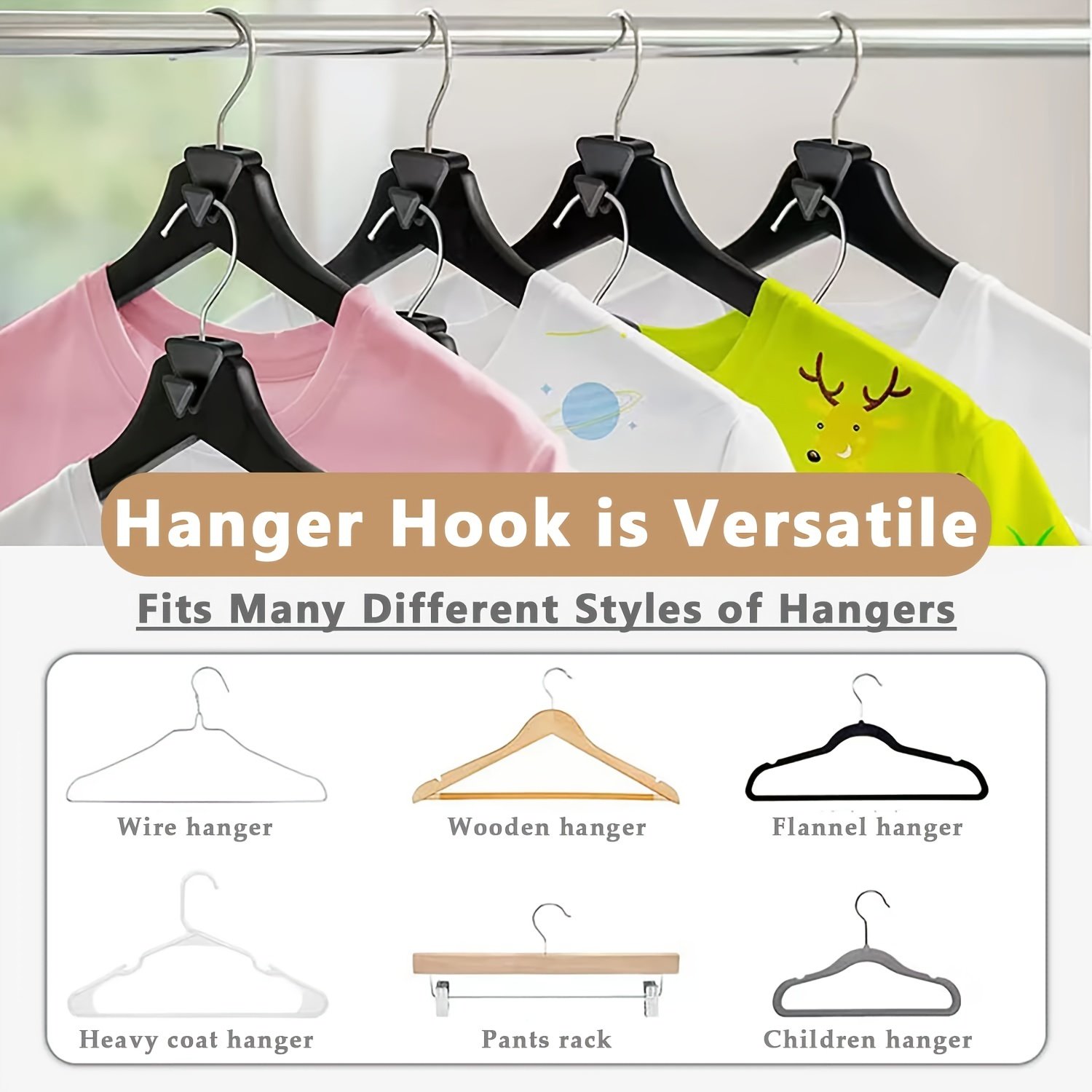 Works with all types of hanger: Use with all types of hangers — plastic, wood, wire, or velvet. Triangle Hanger Hooks holds on snuggly to the hanger.